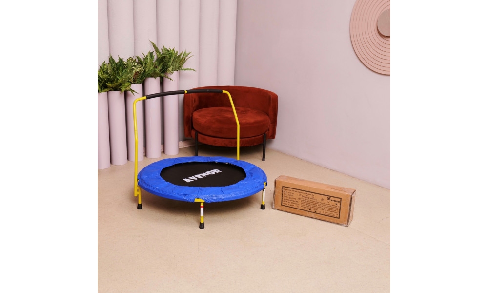 Фитнес-батут DFC AVENOR с поручнем разработан с учётом безопасности и комфорта пользователей. Максимальный вес, который он может выдержать, составляет 100 кг, а диаметр этой модели — 36 дюймов (92 см). Поручень диаметром 19,1 мм и толщиной 1,2 мм.